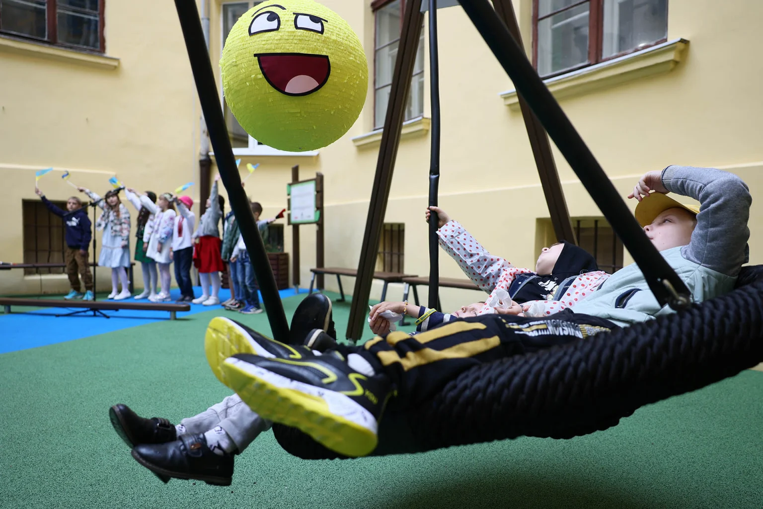 Lviv Public School 62 is located in the very city center, in a historic building. Leopolis Hotel Lviv, owned by Hartwall family from Finland for 15 years, is situated right next to the school. The hotel has been financially supporting the school and initiated the Joy of Play project as a part of its commitment to support local community. The hotel management has supervised the project on site and made sure it was completed as planned.