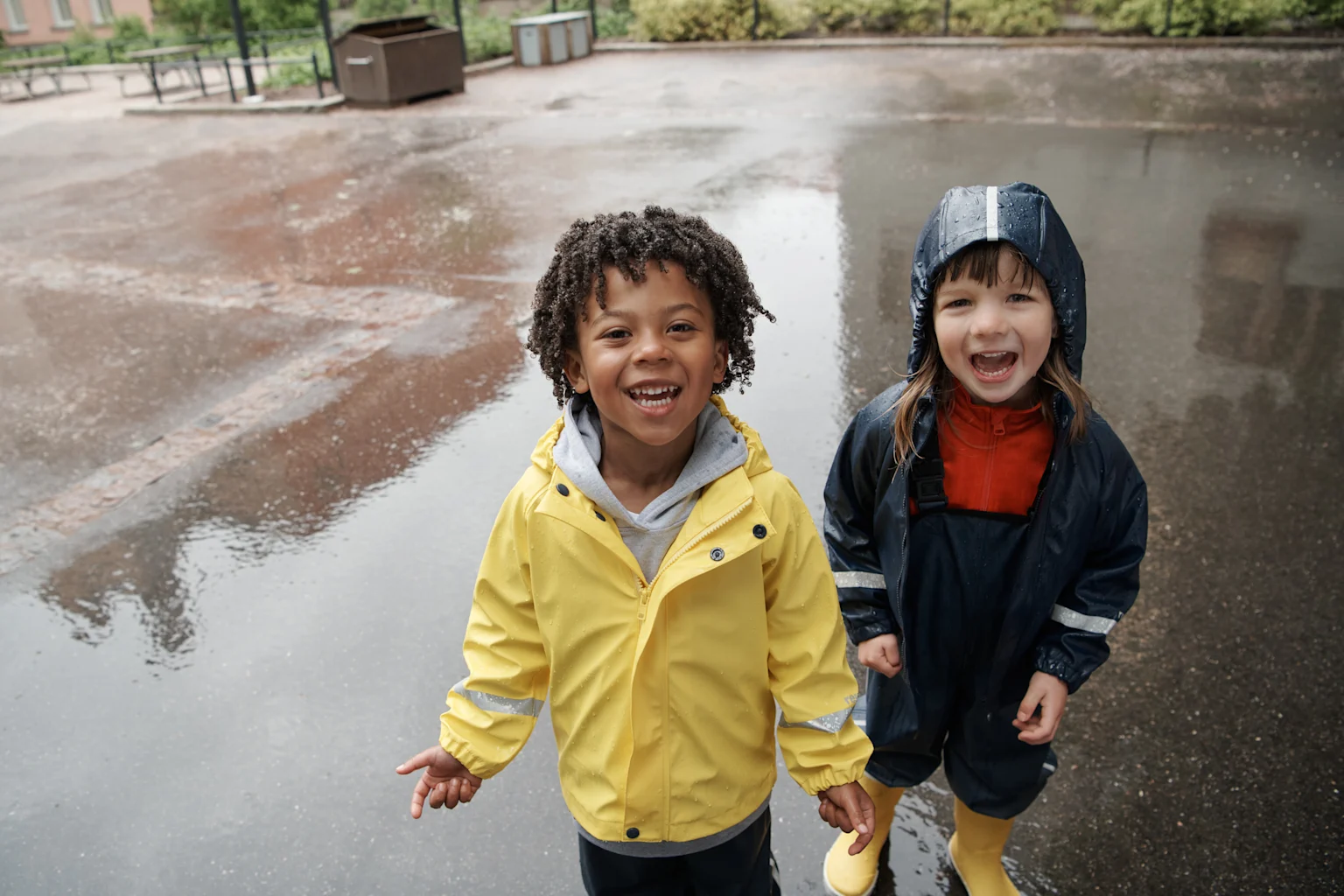 Picture: To reach our emission reduction targets, we will further increase the use of recycled materials. Starting from spring 2022, Reima rainwear is made of 100% recycled polyester.